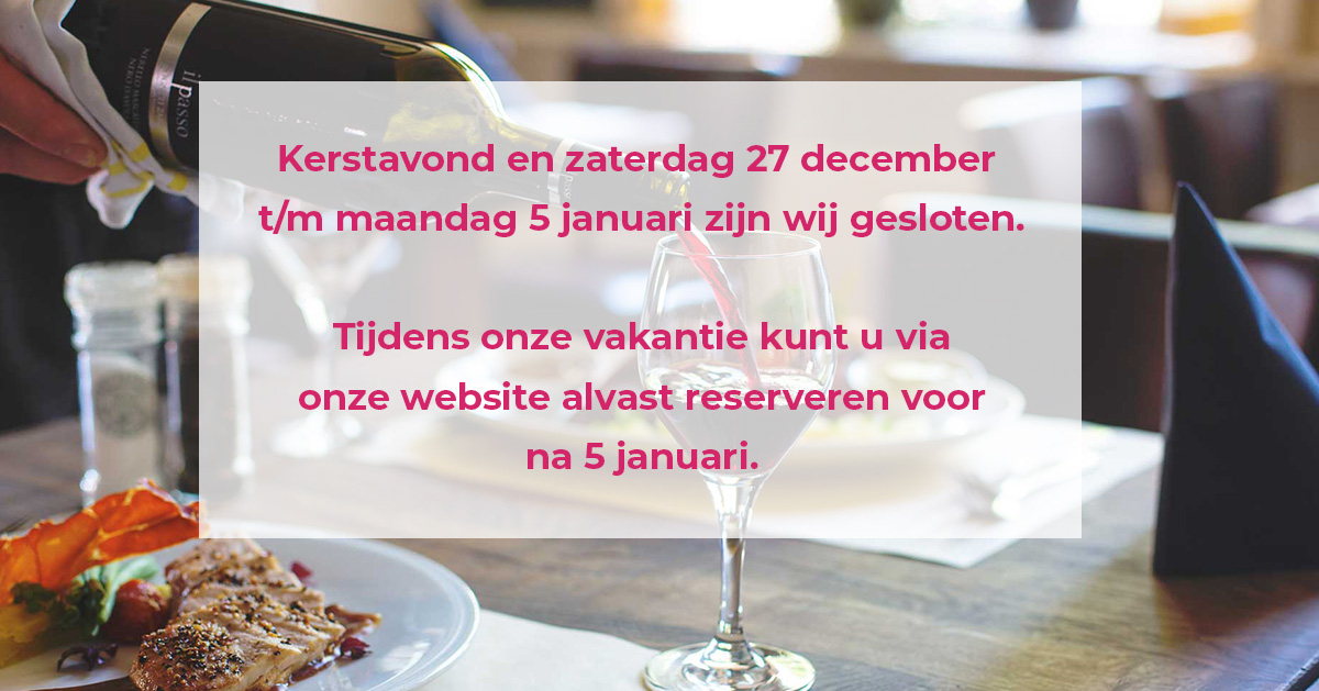 Geniet van een heerlijk 3-gangen keuzemenu, high tea, high wine. Of haal een heerlijke maaltijd af.